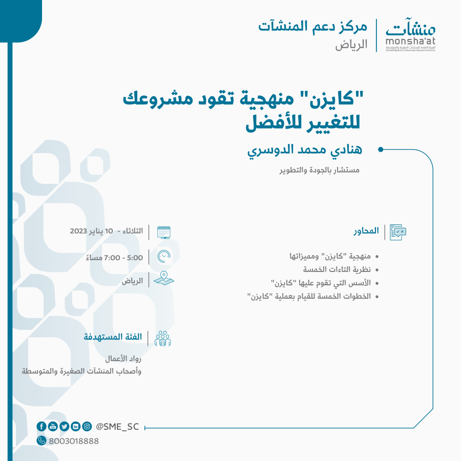 لقاء بعنوان "كايزن" منهجية تقود مشروعك للتغيير للأفضل