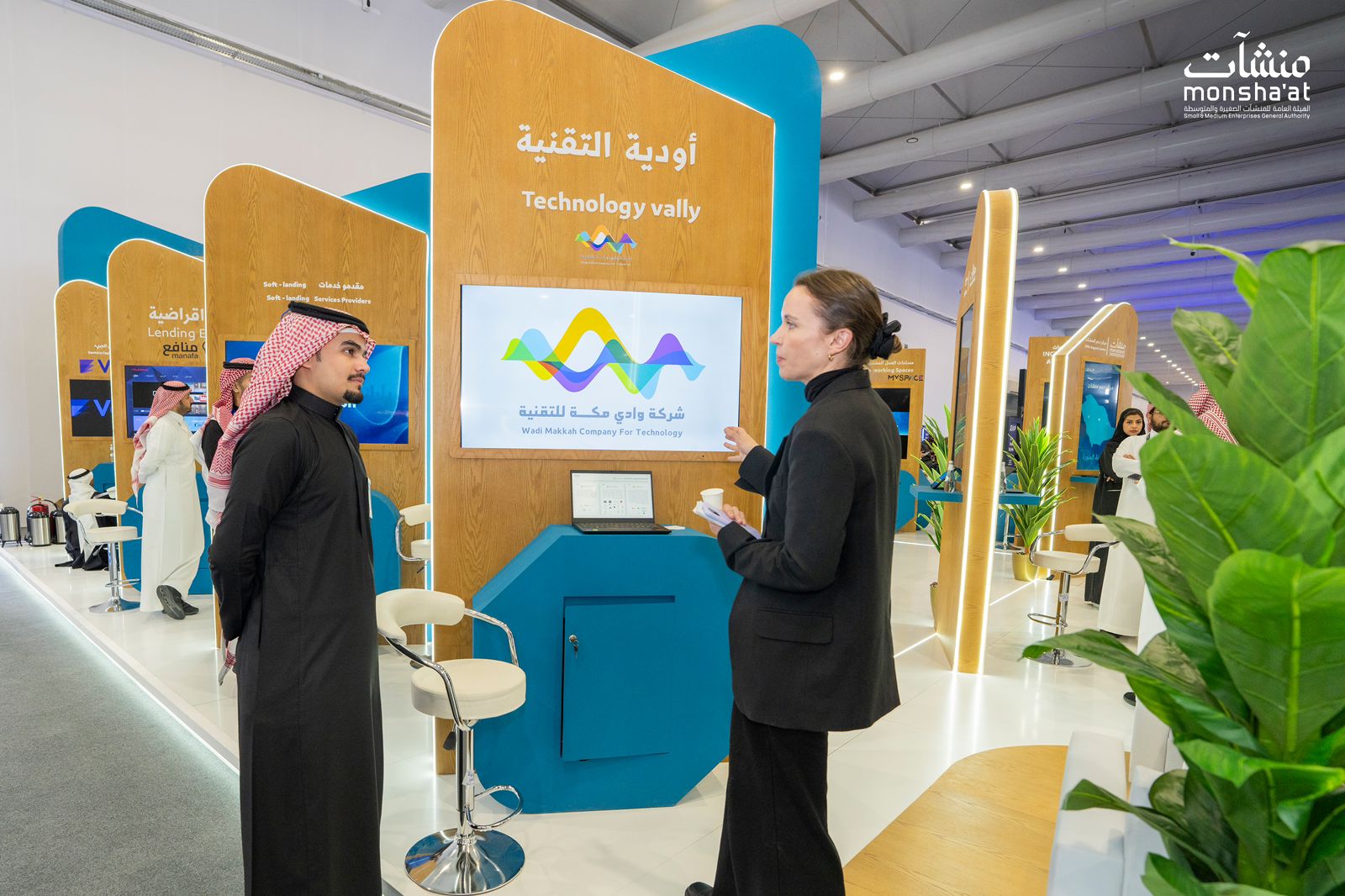 وتستعرض "منشآت" في جناحها أبرز الخدمات والمبادرات التي تقدمها لرواد الأعمال وأصحاب المنشآت الصغيرة والمتوسطة، حيث توجَد خدمات مزايا وجدير ومراكز دعم المنشآت، إلى جانب استضافة أبرز الممثلين من الجهات الداعمة لمنظومة ريادة الأعمال والابتكار؛ لتقديم اللقاءات والجلسات في مختلف المجالات المتعلقة بعلوم البيانات والذكاء الاصطناعي والتقنية المالية وإنترنت الأشياء والأمن السيبراني، إضافة إلى توفير خدمات الاستشارة والإرشاد بشكل مباشر للمستفيدين في المؤتمر.