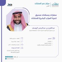 عبدالعزيز بن عبدالرحمن اليوسف مدير صندوق تنمية الموارد البشرية "هدف" بالمنطقة الشرقية ؛ في لقاء بعنوان "محفزات وممكنات صندوق تنمية الموارد البشرية للمنشآت"