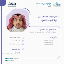 عبدالرحمن خالد المشرف "مسؤول إدارة علاقة أصحاب العمل في صندوق الموارد البشرية" ؛ في لقاء بعنوان "محفزات وممكنات صندوق تنمية الموارد البشرية"