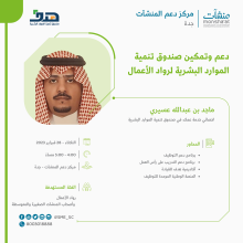 ماجد بن عبدالله عسيري "اخصائي خدمة عملاء في صندوق تنمية الموارد البشرية" ؛ في لقاء بعنوان "دعم وتمكين صندوق تنمية الموارد البشرية لرواد الأعمال"