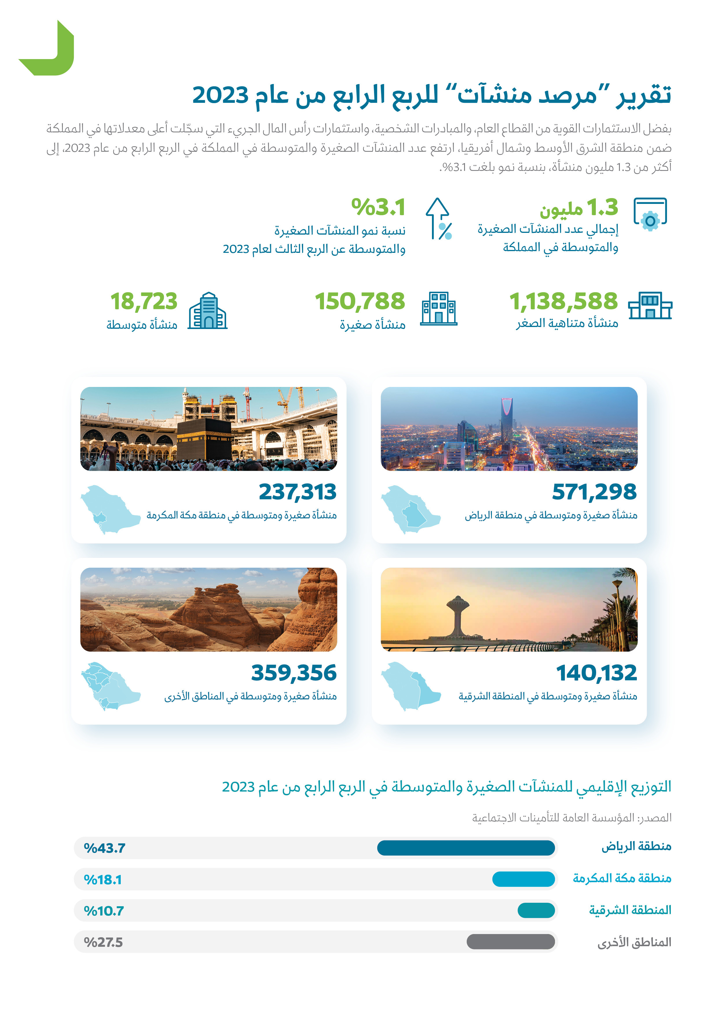 "منشآت": 1.3 مليون منشأة صغيرة ومتوسطة في المملكة بزيادة 3.1% عن الربع الثالث