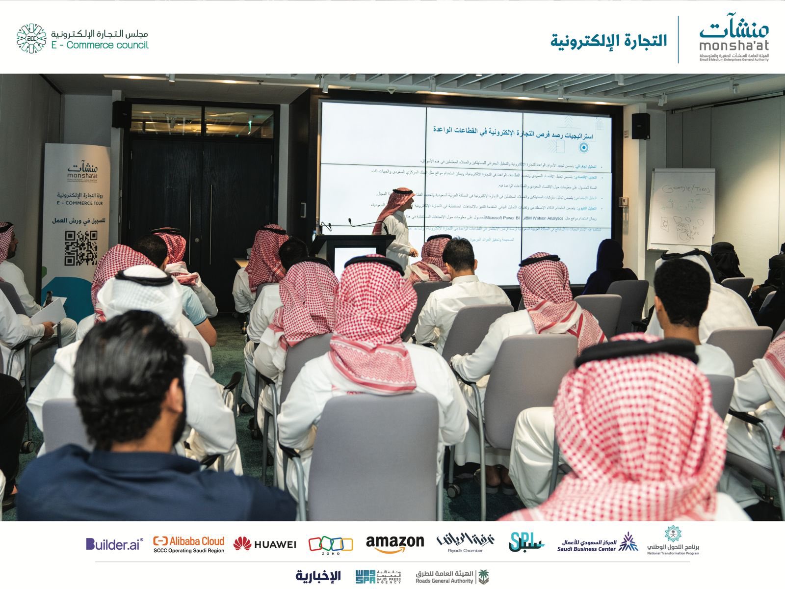 The tour includes various activities, starting with a keynote address by the E-commerce Council, followed by a panel discussion titled "Developing an Enabling Environment for E-commerce Development in the Kingdom: The Role of Government Entities in Legislation." Expert presenters and specialists will lead this session, offering entrepreneurs and SMEs valuable insights into the latest global trends for digital business development and expansion.